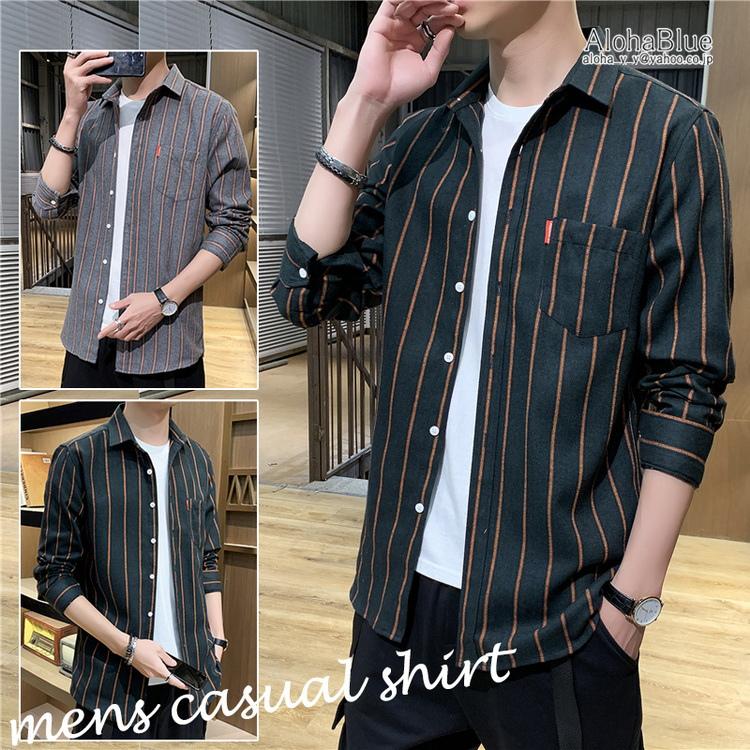 ストライプシャツ メンズ 春物 春 シャツ カジュアルシャツ トップス 長袖 細身 きれいめ 10代 代 30代 ファッション C Alohablue 通販 Yahoo ショッピング